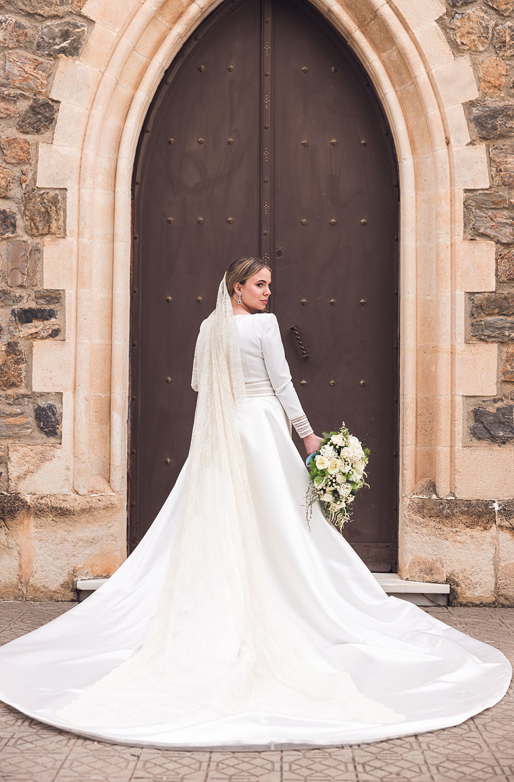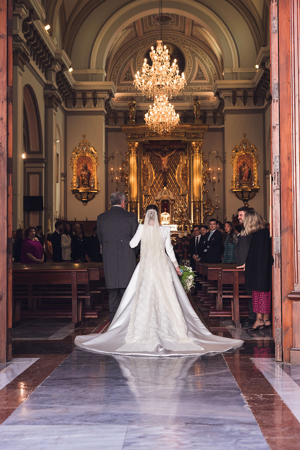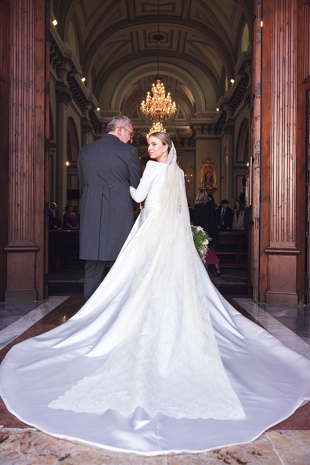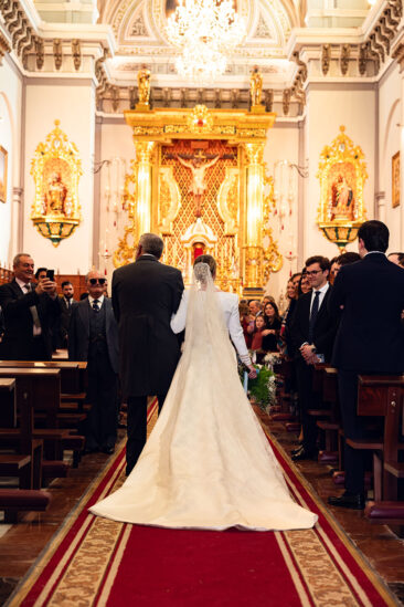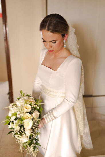 La novia lució espectacular con un diseño del malagueño Rafael Urquízar.