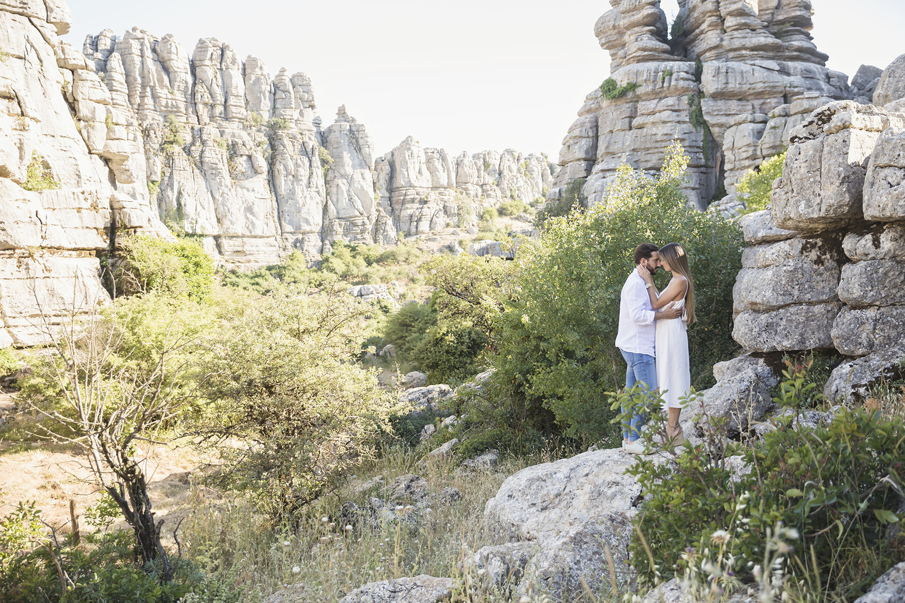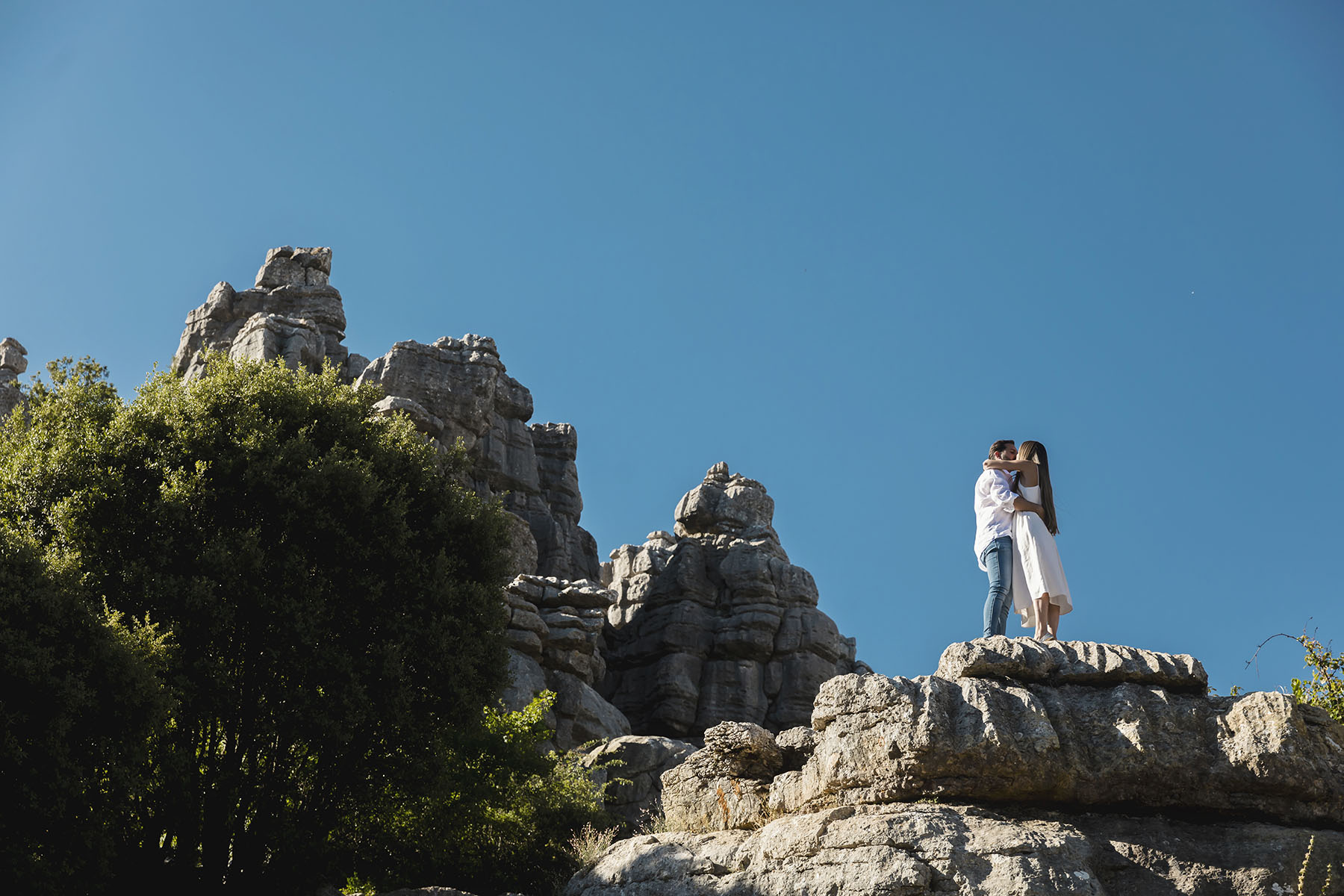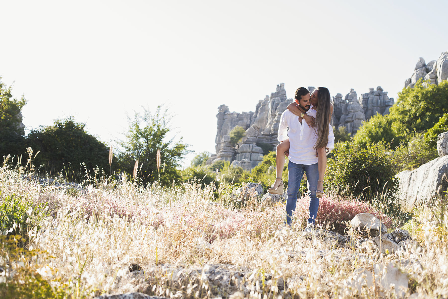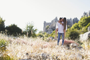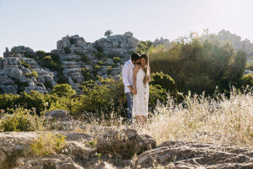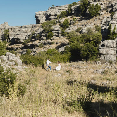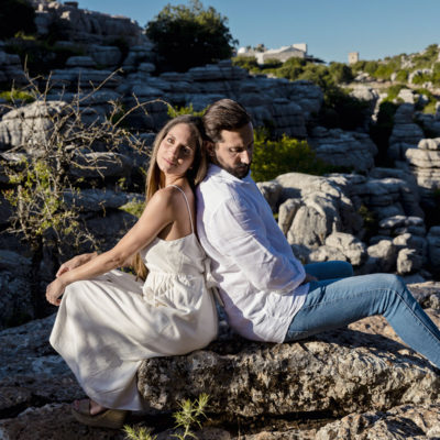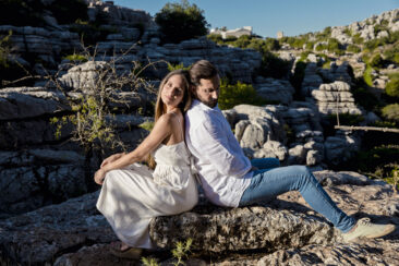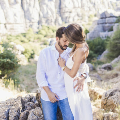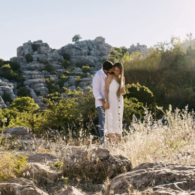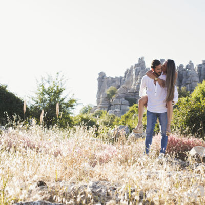 Varias zonas, donde destaca el precioso Torcal de Antequera. Una tarde preciosa con unos novios que tenían el nervio lógico por el día que estaba por llegar.