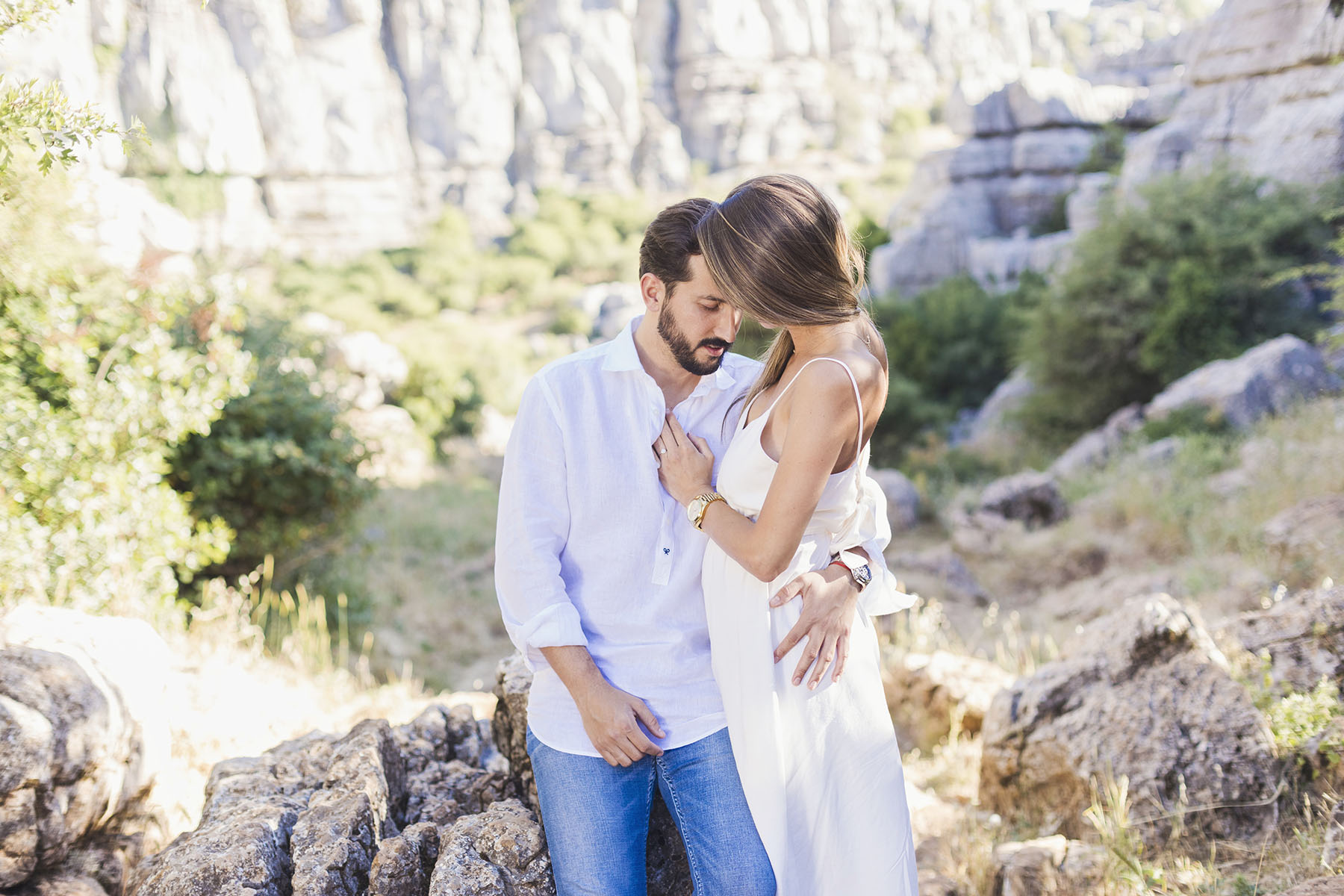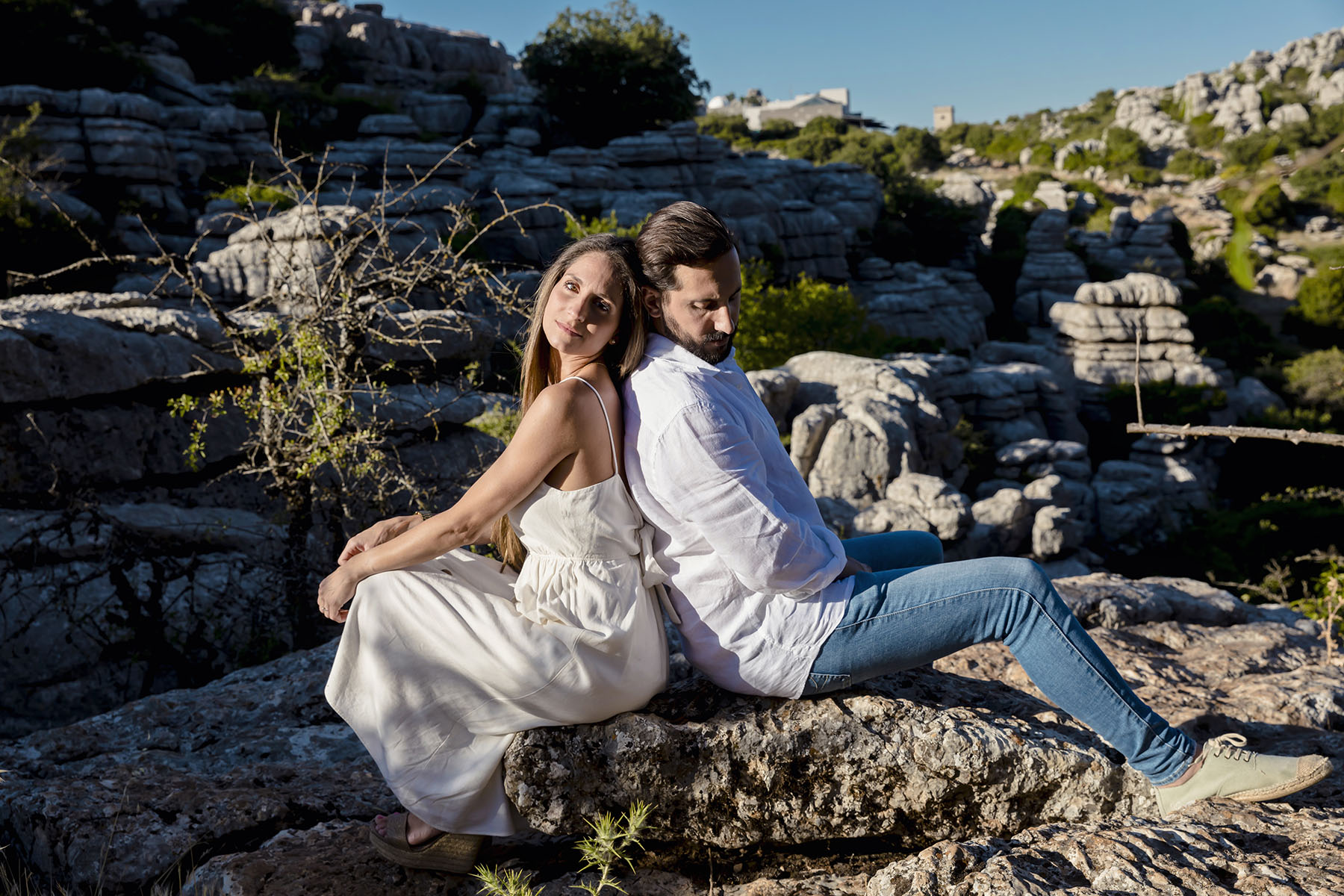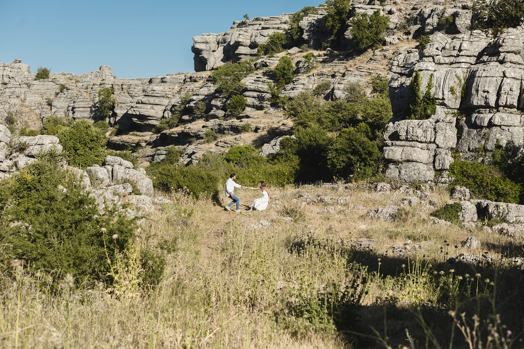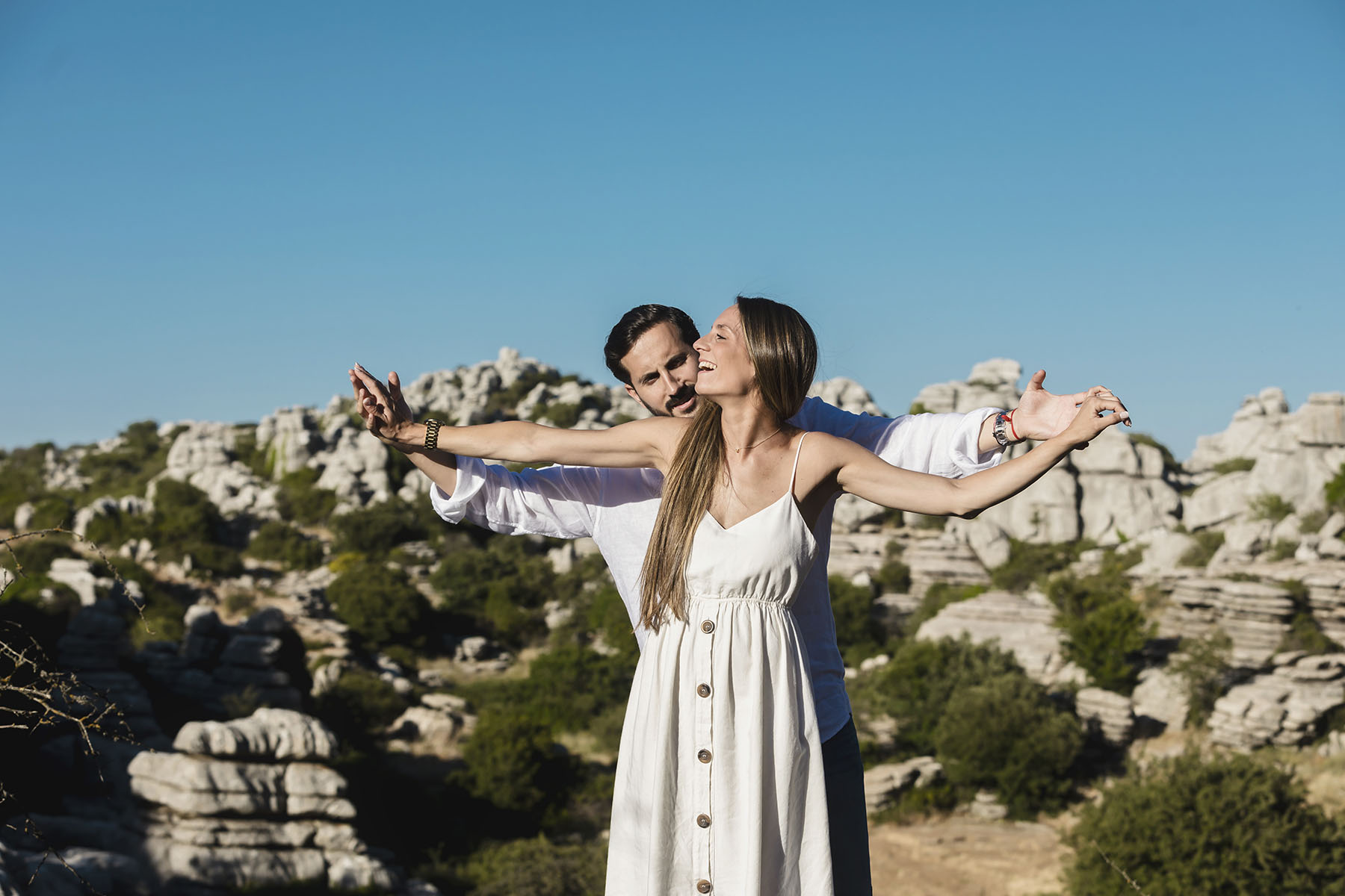 Varias zonas, donde destaca el precioso Torcal de Antequera. Una tarde preciosa con unos novios que tenían el nervio lógico por el día que estaba por llegar.