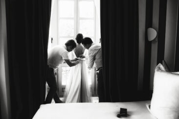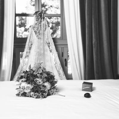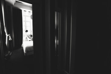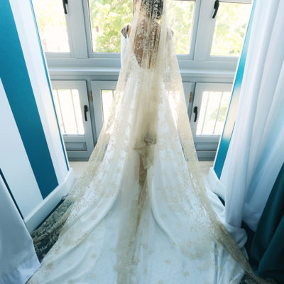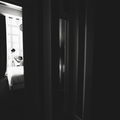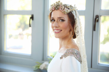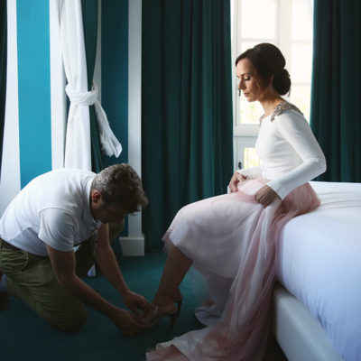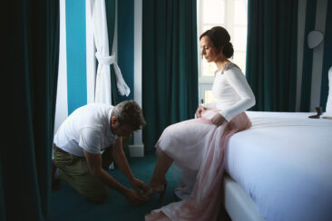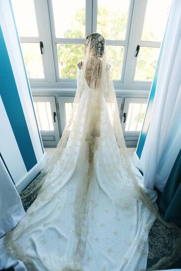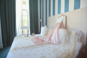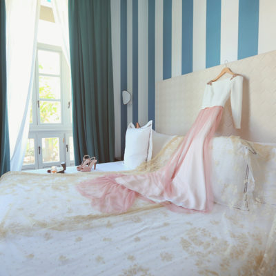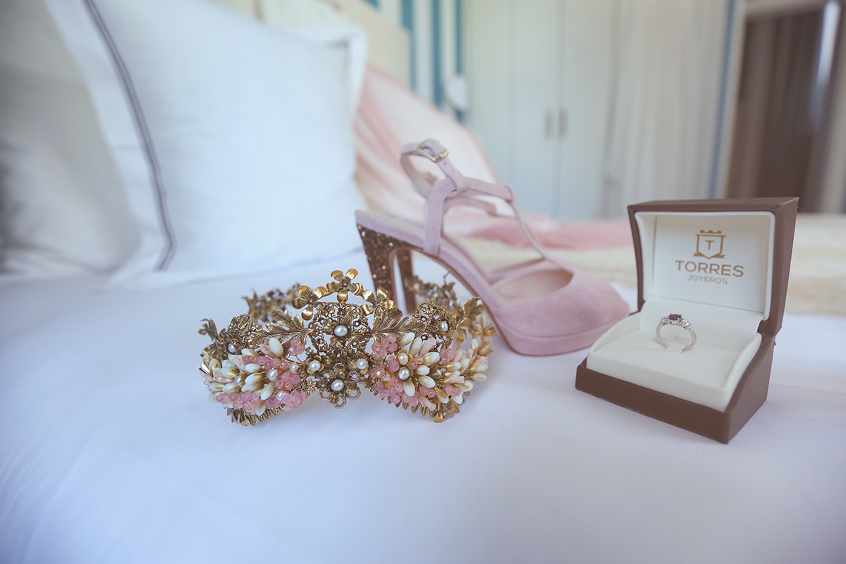 La novia decidió arreglarse en un lugar con muchísimo clasicismo y perfecto para que las fotos saliesen más que bien. El lugar elegido fue el Room Mate Valeria y fue ayudada por los diseñadores de su traje , Alta Costura Montesco.
