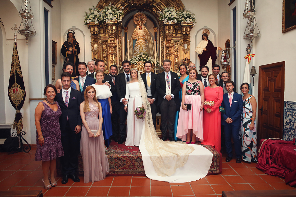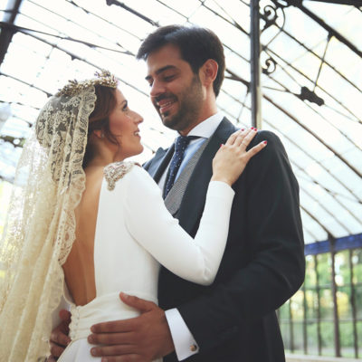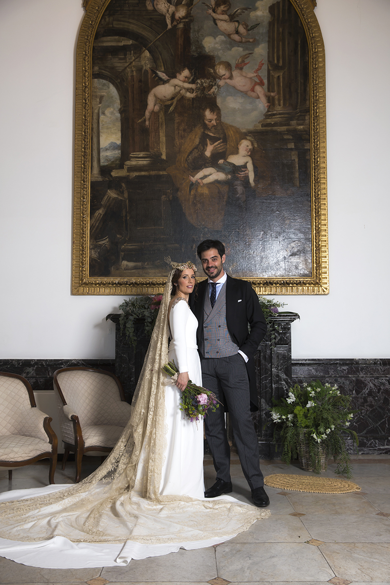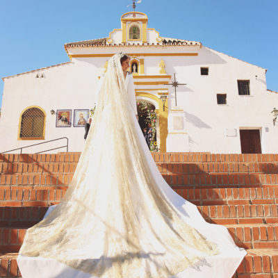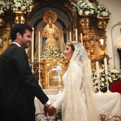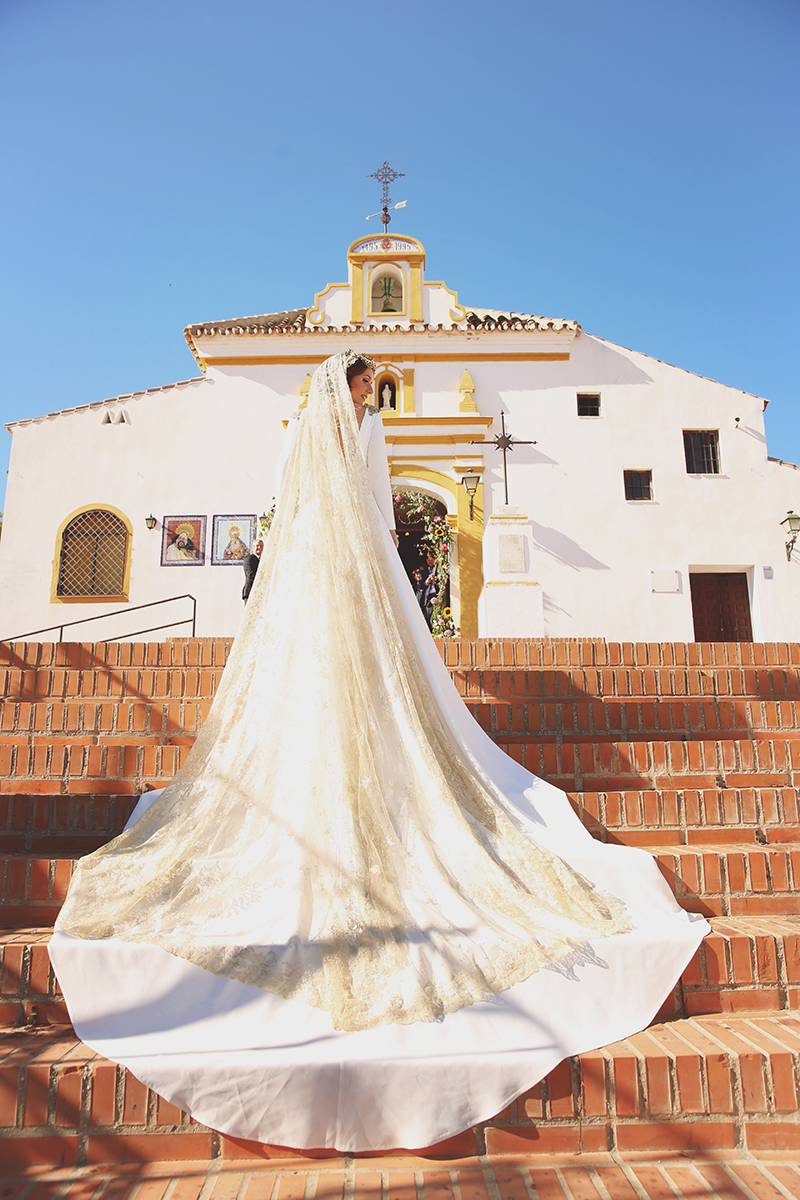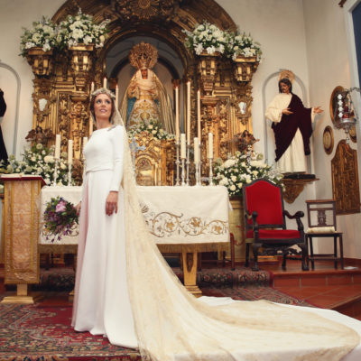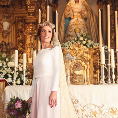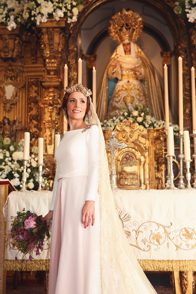 Un traje espectacular y lleno de detalles, rematado por una corona preciosa de Bambary y una mantilla de herencia familiar y de una calidad incalculable.