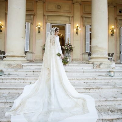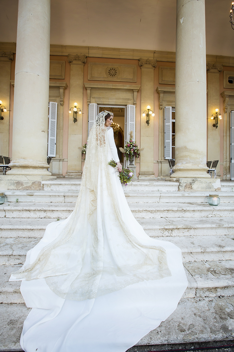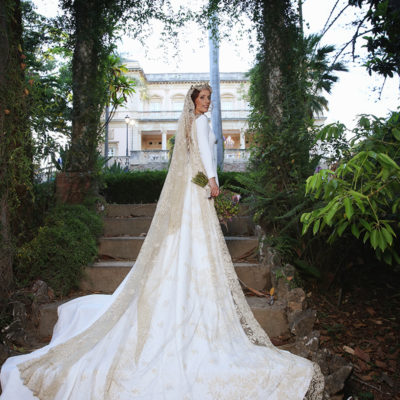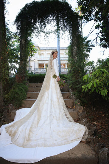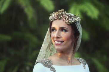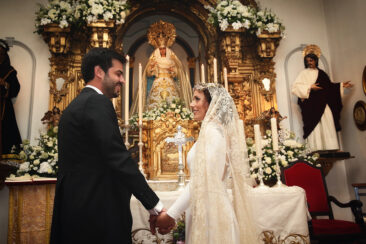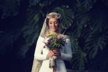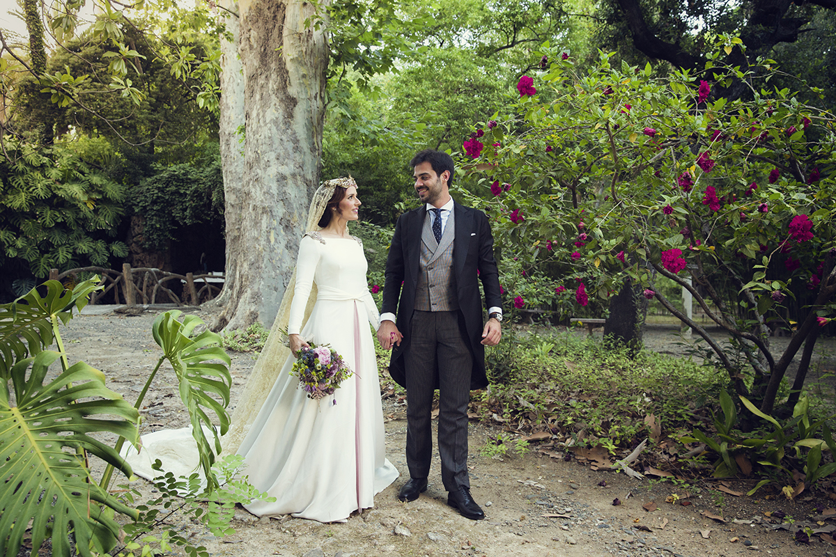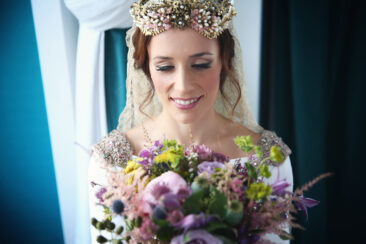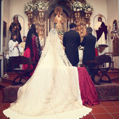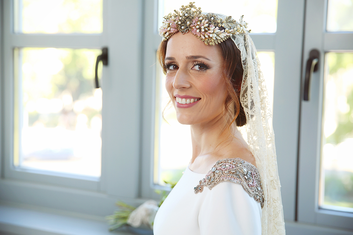 Un traje espectacular y lleno de detalles, rematado por una corona preciosa de Bambary y una mantilla de herencia familiar y de una calidad incalculable.