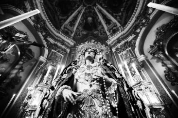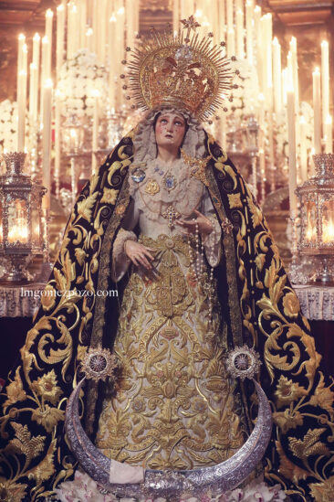Para todos los que somos cofrades, sabemos que este año el besamano de Nuestra Señora de la Concepción ha sido extraordinario y único. No es costumbre que una imagen presida el Altar Mayor de los Santos Mártires para los cultos, a no ser que haya una efeméride que celebrar. En el caso de la Archicofradía del Huerto, celebran el LXXV aniversario de la primera salida procesional de la actual imagen.