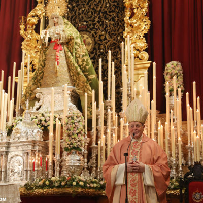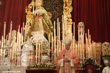 En la mañana del domingo, la Eucaristía la ha presidido Fray Carlos Amigo Vallejo . Durante la misma, se ha repartido una estampa conmemorativa con una foto de estudio que realicé de la imagen de la Virgen.