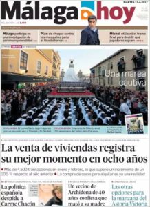 Uno de los días grandes de la Semana Santa de Málaga es el Lunes Santo. en él, se congregan Hermandades de gran arraigo. En este día tuve la portada en el Diario Málaga Hoy, con la imagen de Jesús Cautivo.