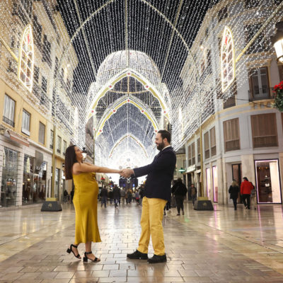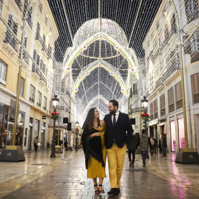 Azucena y Tomás han sido mi última pareja de futuros papás. Ellos buscaban algo diferente para su sesión premamá y aprovechando las luces de Navidad, quisieron un exterior por el Centro de la Ciudad.