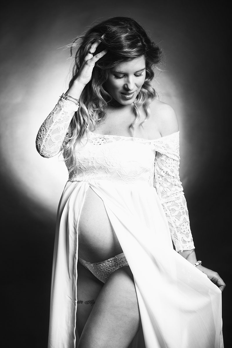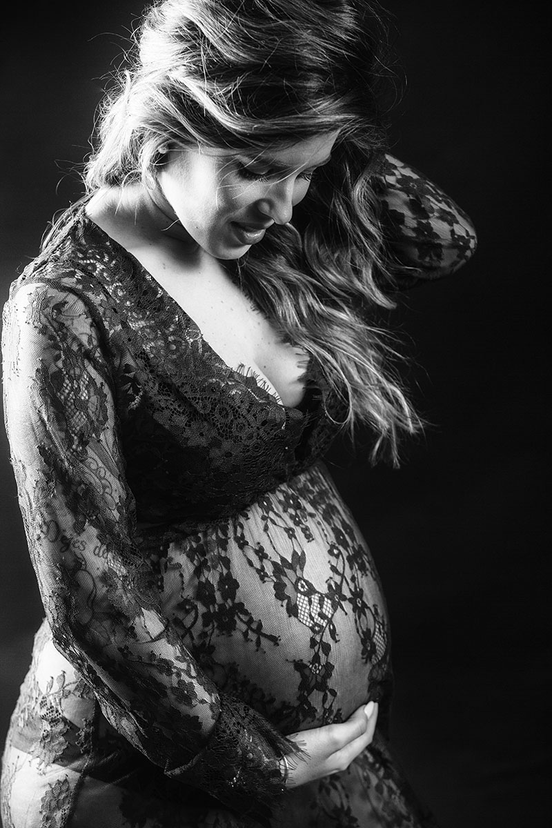 Natalia fue mi última embarazada en el estudio. Al igual que en otras ocasiones, realizamos varios cambios de ropa y jugamos con las luces para que la sesión no fuese repetitiva .