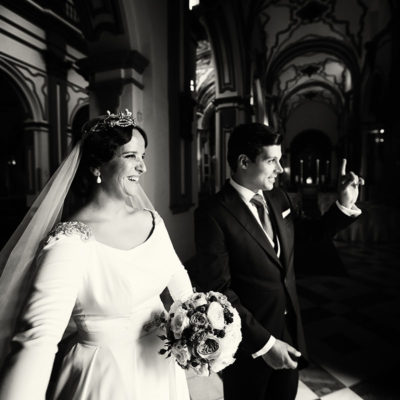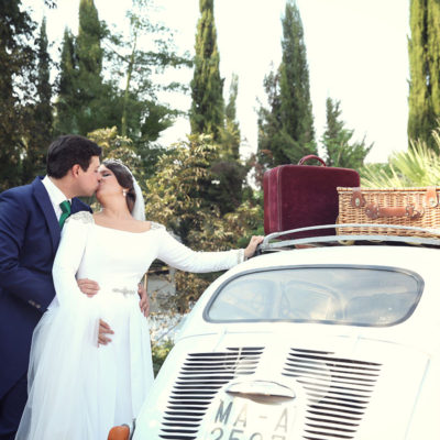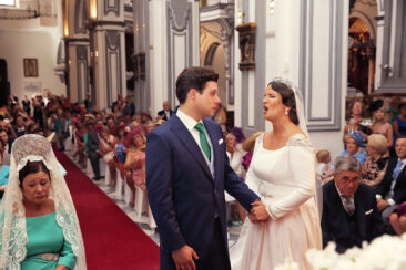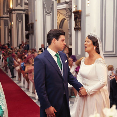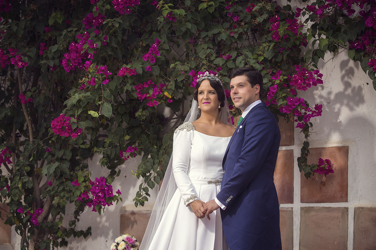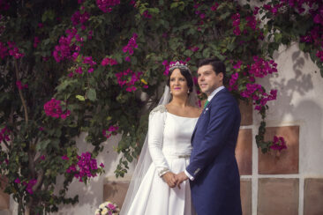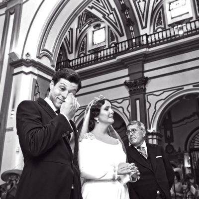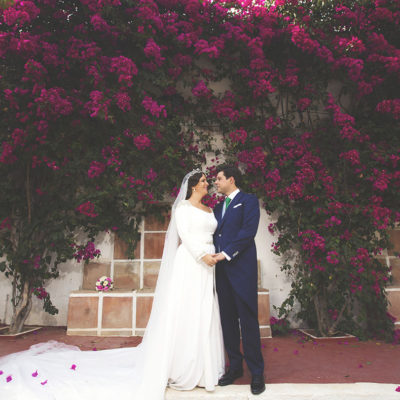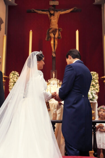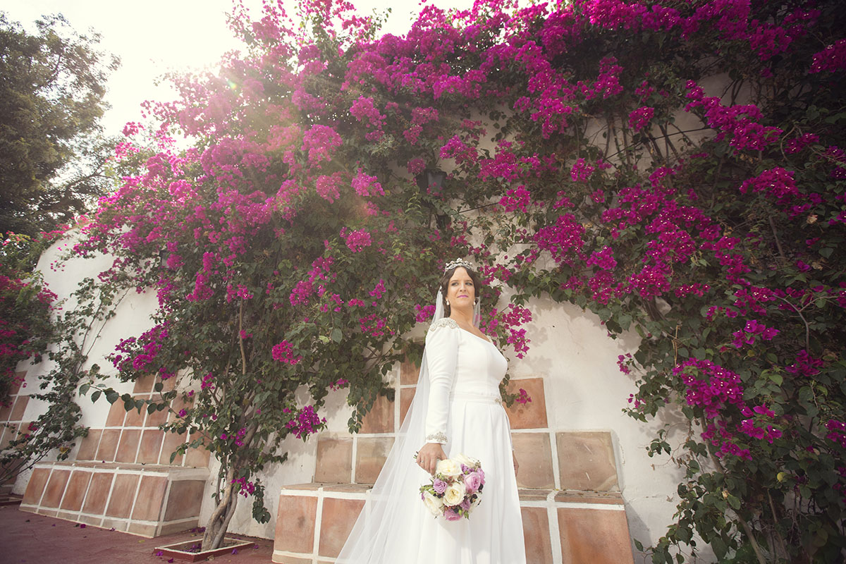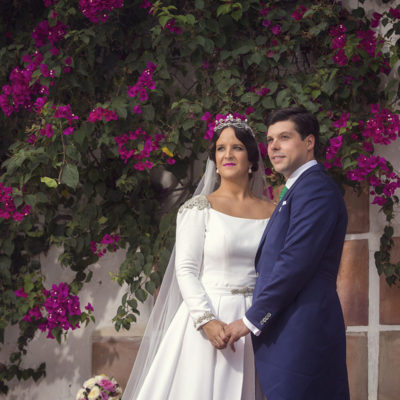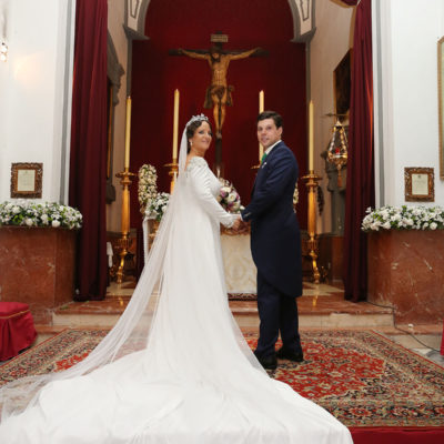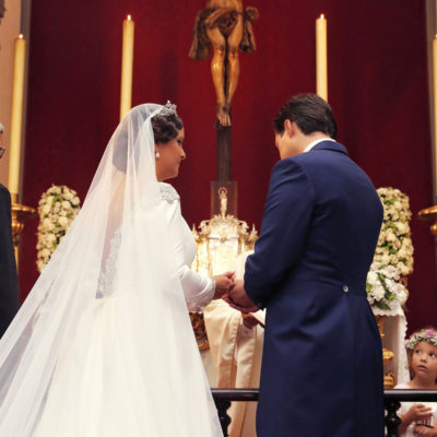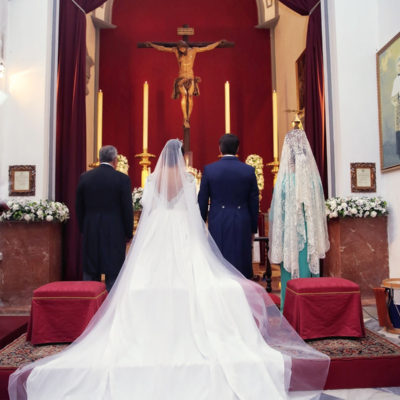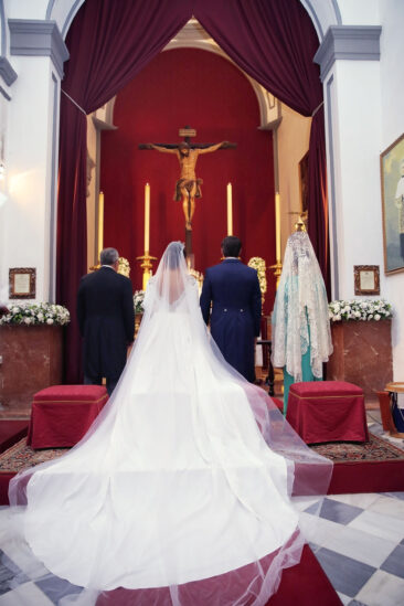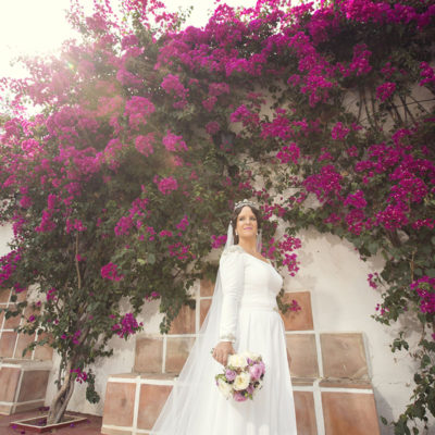 Ella, con corona de Bambary , preparó su día más importante con numerosos detalles (ya veréis el ramo, las alianzas etc). Momentos únicos vividos con el coro de la Real Hermandad del Rocío de Málaga, también con el grupo Ortigosa . Ambos, cantaron y realzaron más aún el enlace.