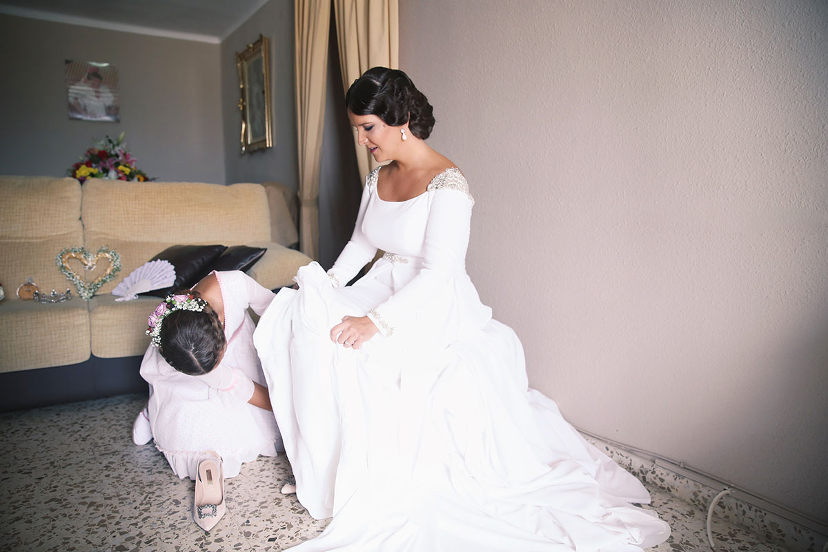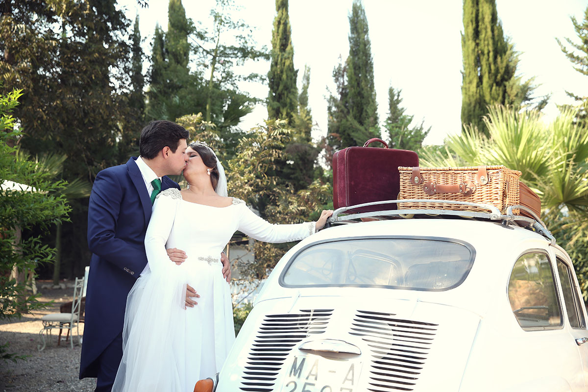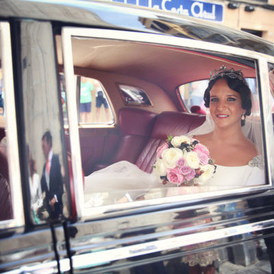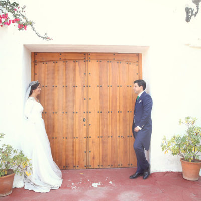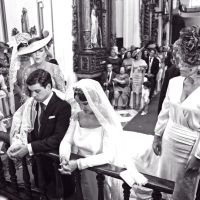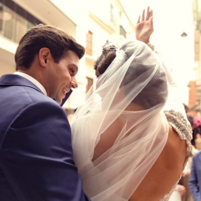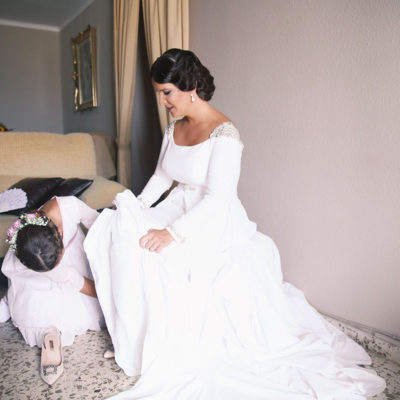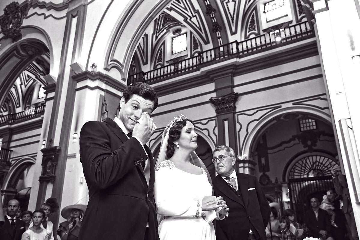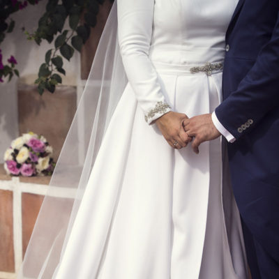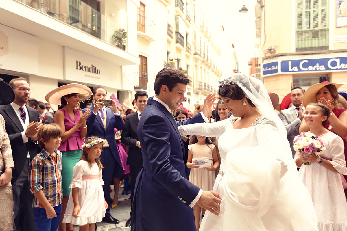 Ella, con corona de Bambary , preparó su día más importante con numerosos detalles (ya veréis el ramo, las alianzas etc). Momentos únicos vividos con el coro de la Real Hermandad del Rocío de Málaga, también con el grupo Ortigosa . Ambos, cantaron y realzaron más aún el enlace.