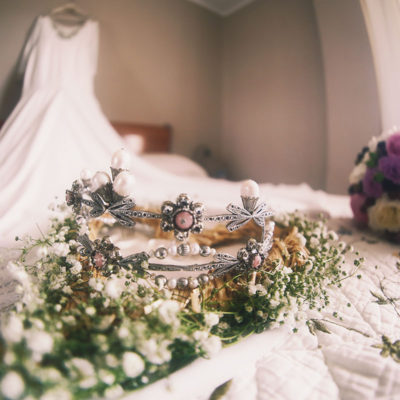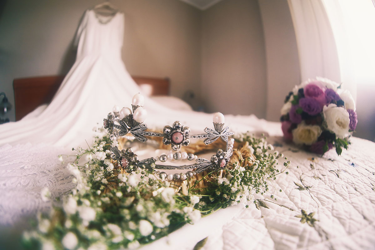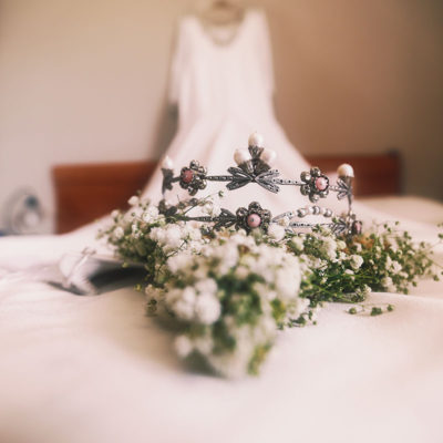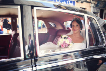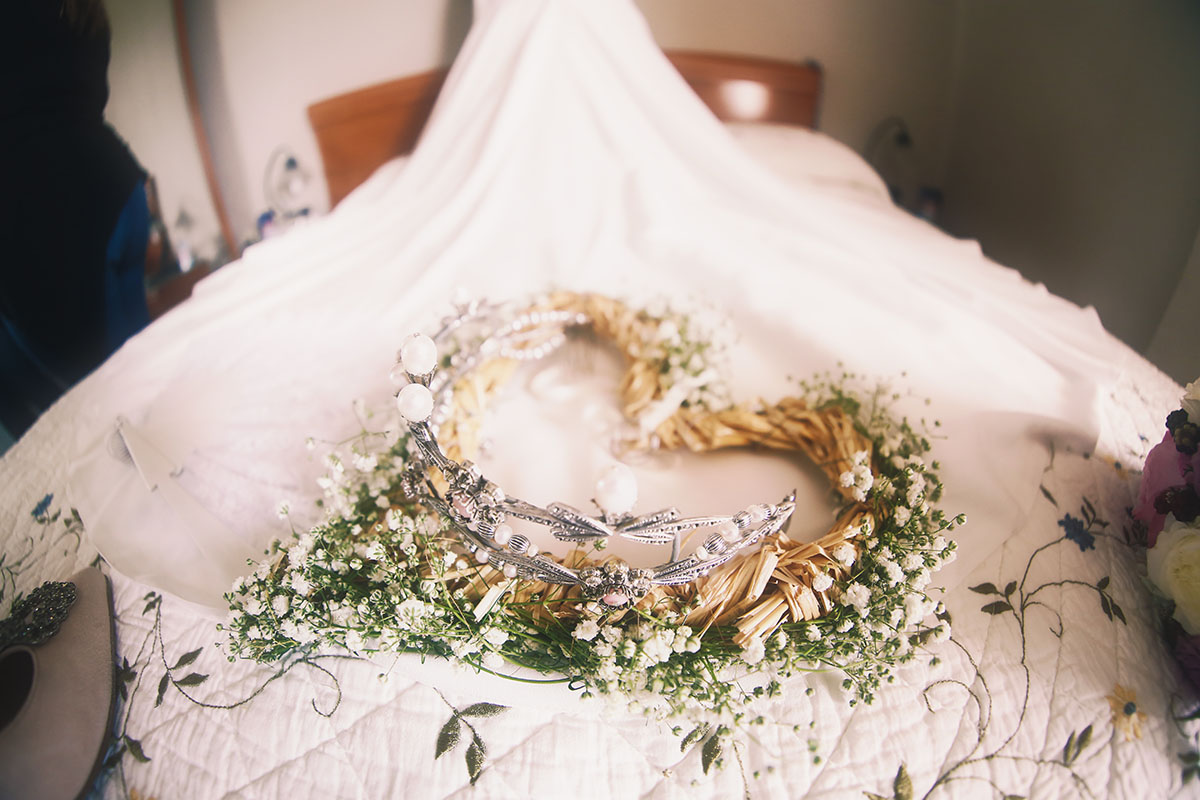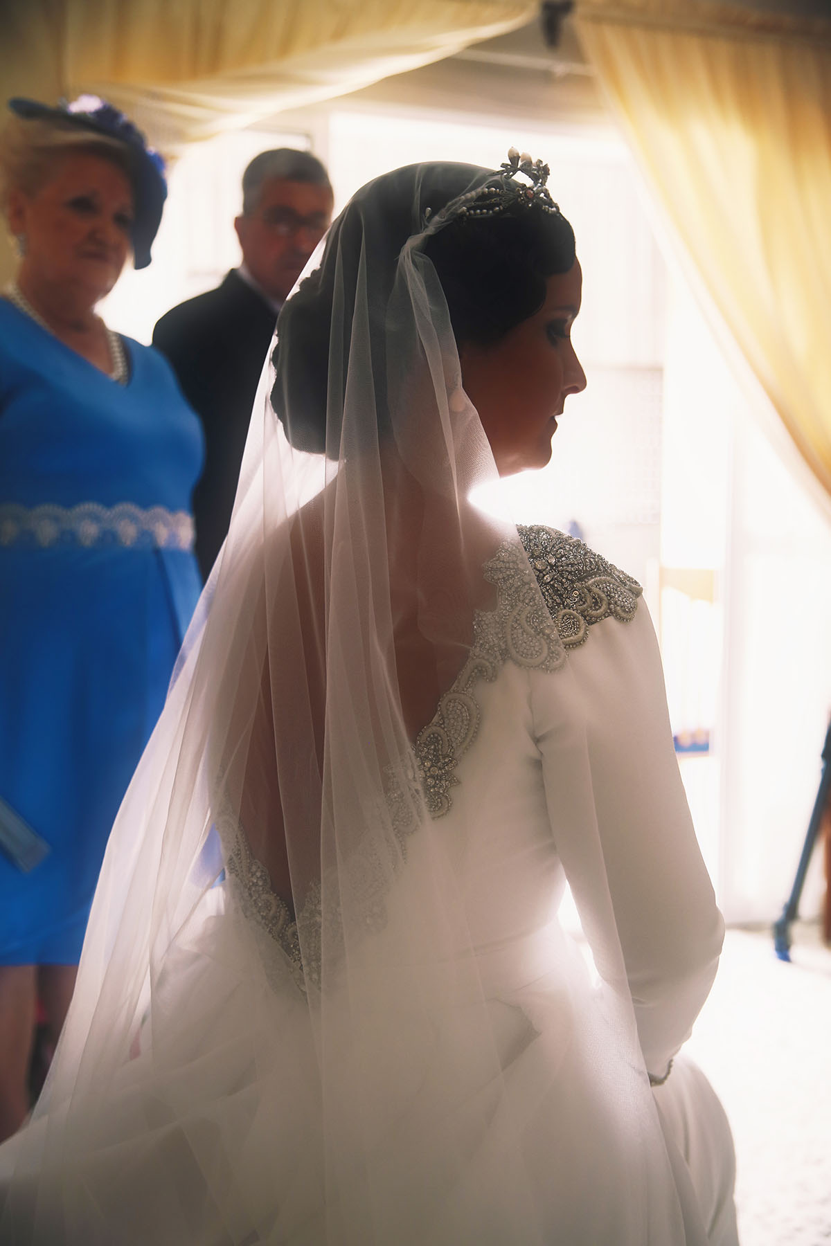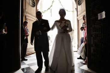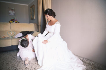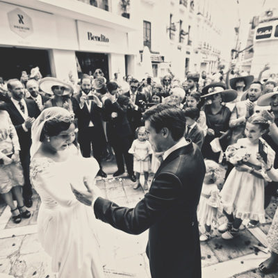 Ella, con corona de Bambary , preparó su día más importante con numerosos detalles (ya veréis el ramo, las alianzas etc). Momentos únicos vividos con el coro de la Real Hermandad del Rocío de Málaga, también con el grupo Ortigosa . Ambos, cantaron y realzaron más aún el enlace.