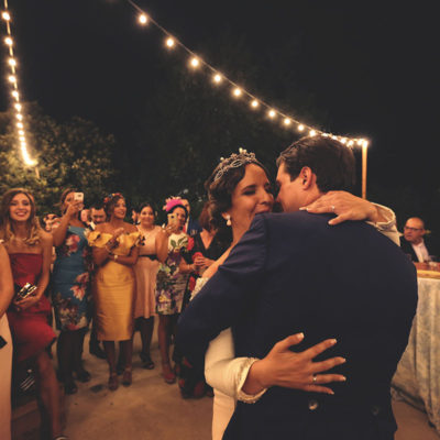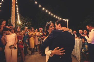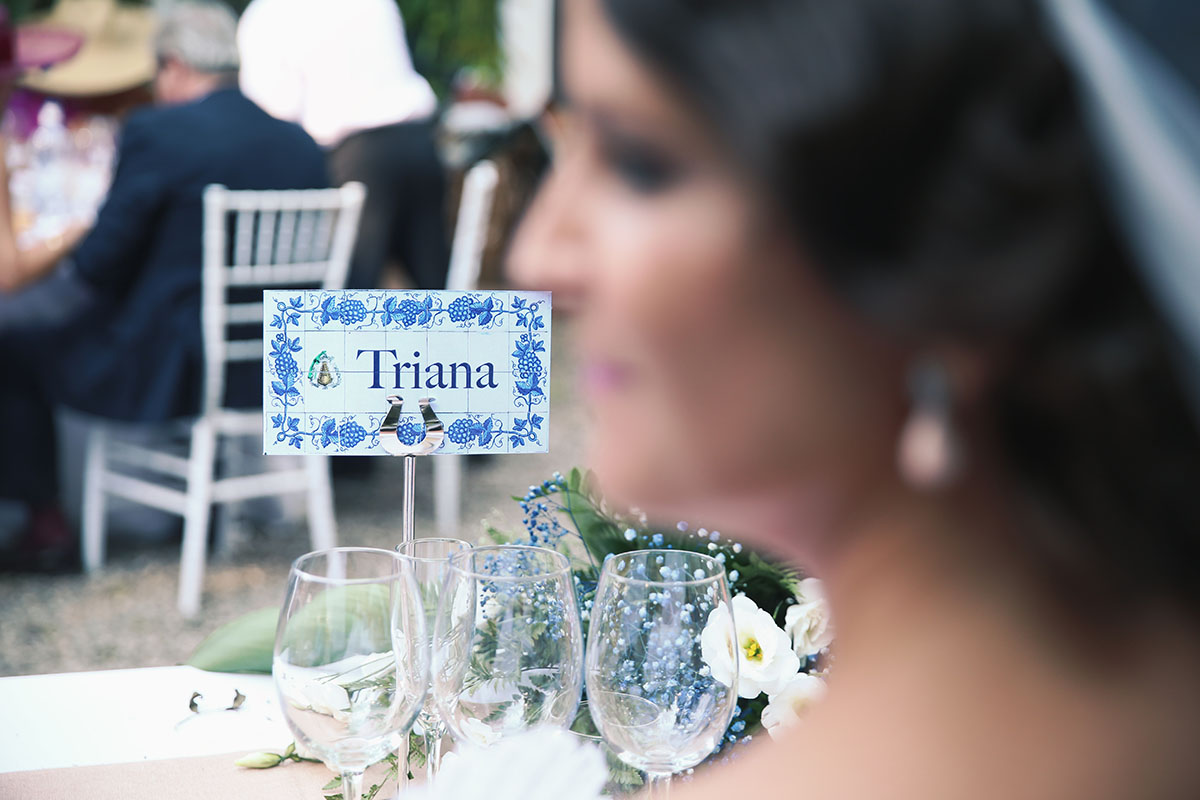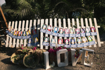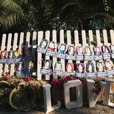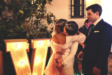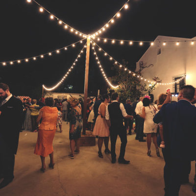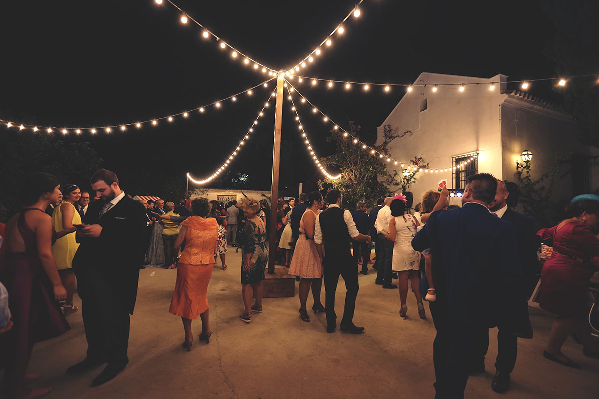 Mención especial para el lugar de celebración, la Finca El Carambuco y el catering El Palacio. Una mezcla perfecta que lo remató los detalles de masquepalets con una guirnaldas de luces .