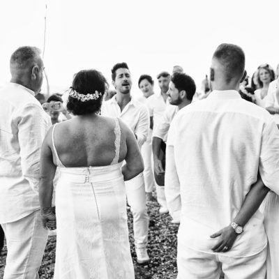 El lugar elegido fue la playa de La Viborilla, una cala con mucho encanto (y muy usada para numerosas sesiones). Con familia, con amigos y con muchas risas, viví una noche preciosa junto a esta gran pareja.